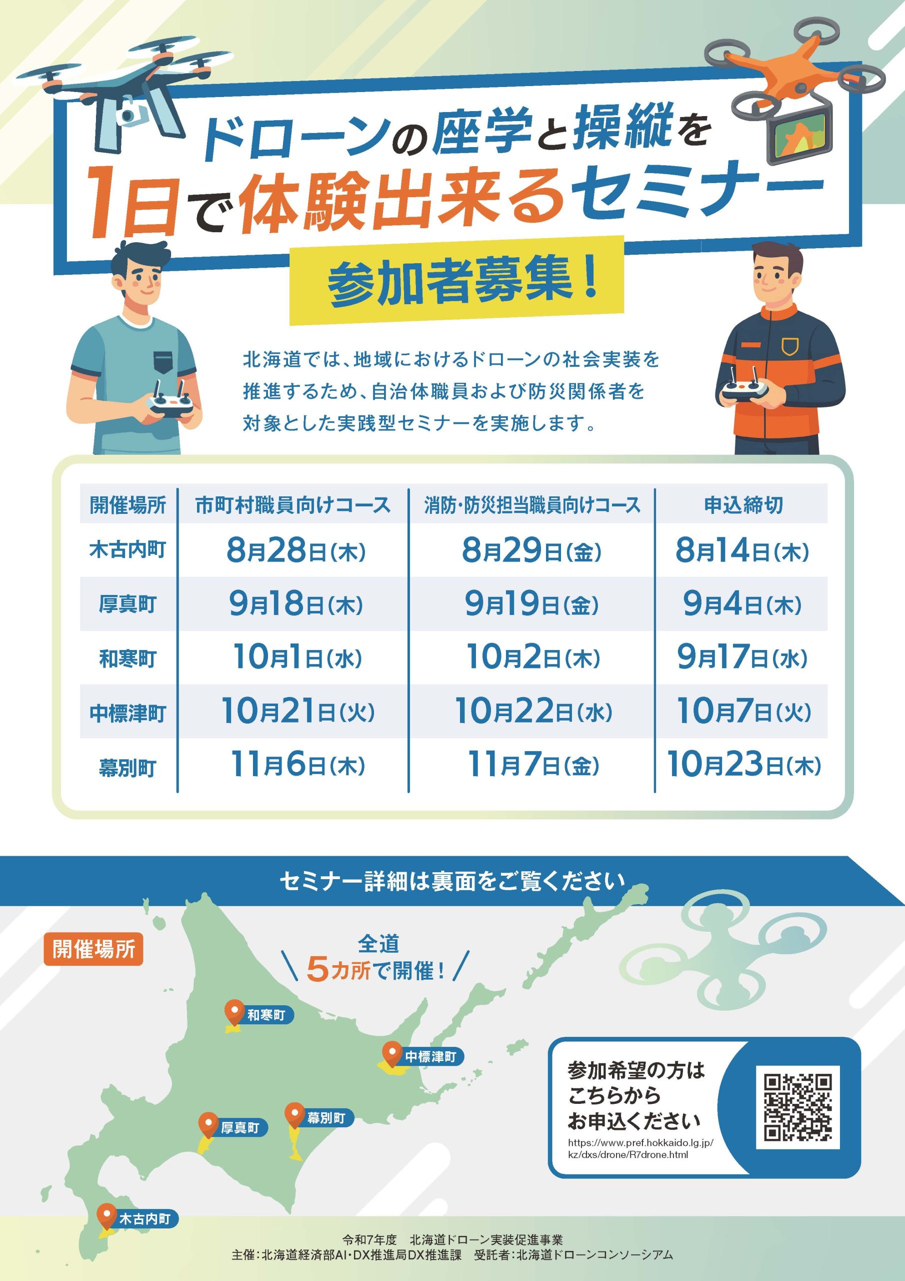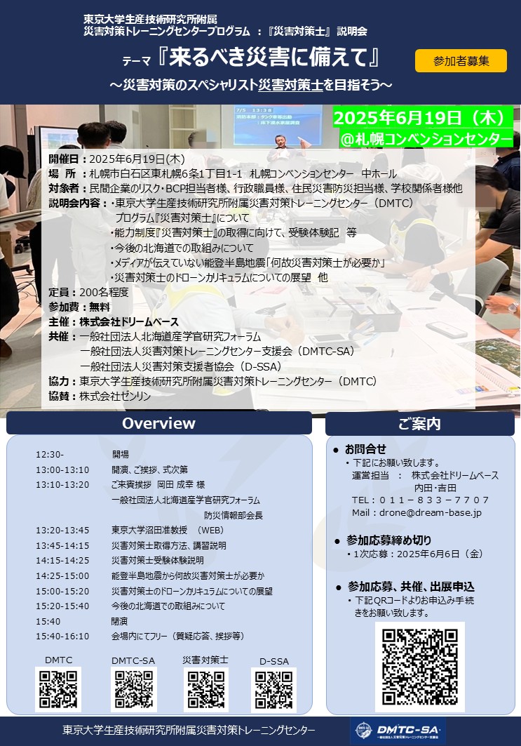 JUAVACドローンエキスパートアカデミー北海道校を運営しています。その他に留萌フィールド分校、赤平UNiCONフィールド分校、後志フィールド分校を展開し、国家資格に関する講習を行う「登録講習機関」としての認可されています。