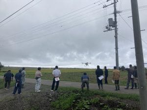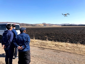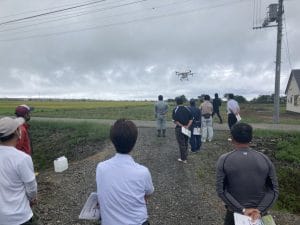 従来の散布方法では10aあたり約1時間かかっていた作業が、ドローンでは約1分で散布でき、大幅に作業時間を短縮することができます。