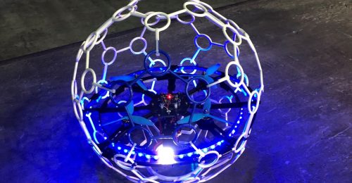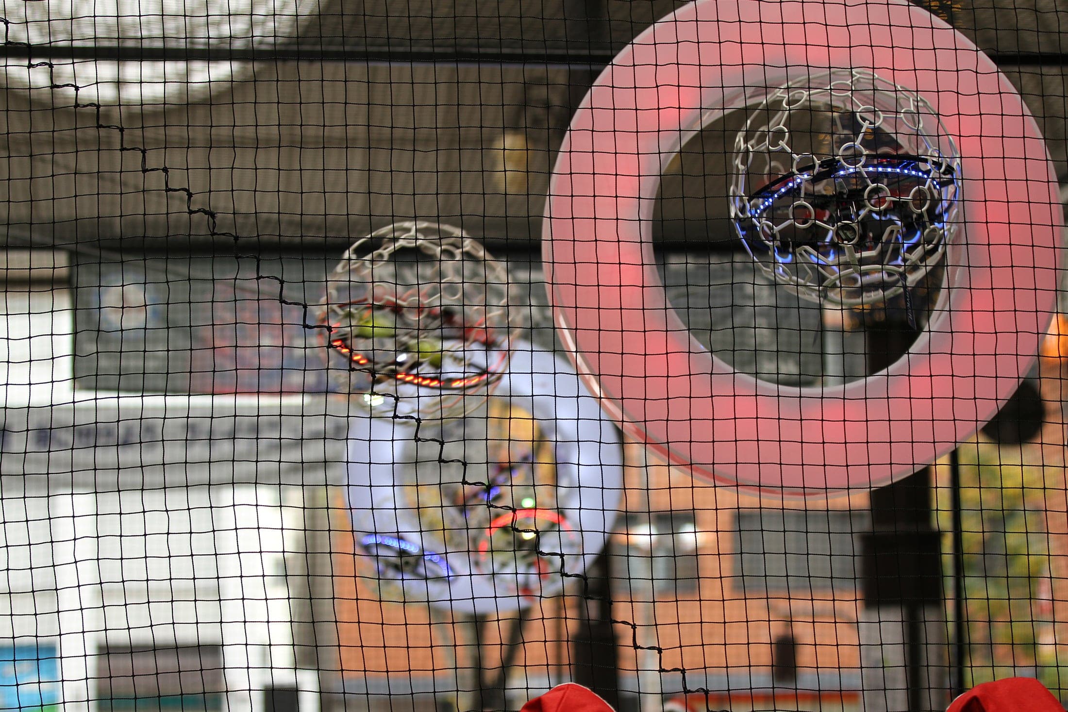 韓国発祥の競技で、球状のプラスチックフレームに覆われた専用ドローンボールを使用し、5 対5 で戦う最新戦略型チームスポーツです。ドローンボールを専用ケージ内のフィールド両サイドの空中に設置したリング状のゴールに入れることで、その得点を競う競技です。